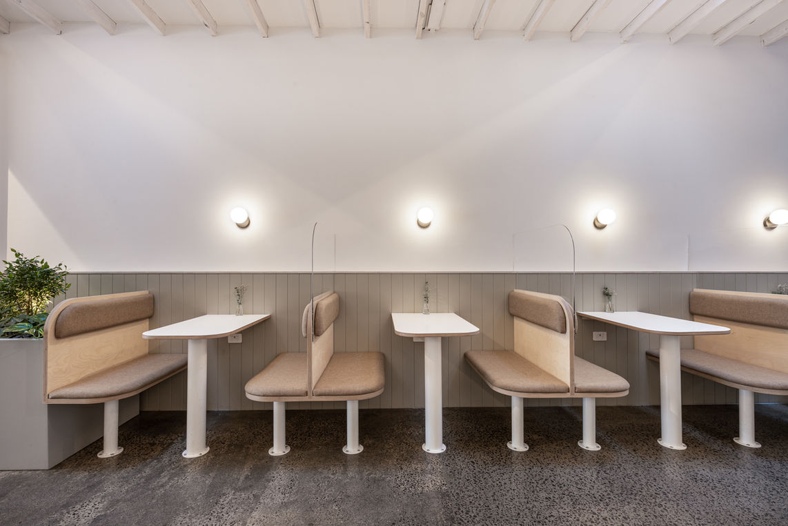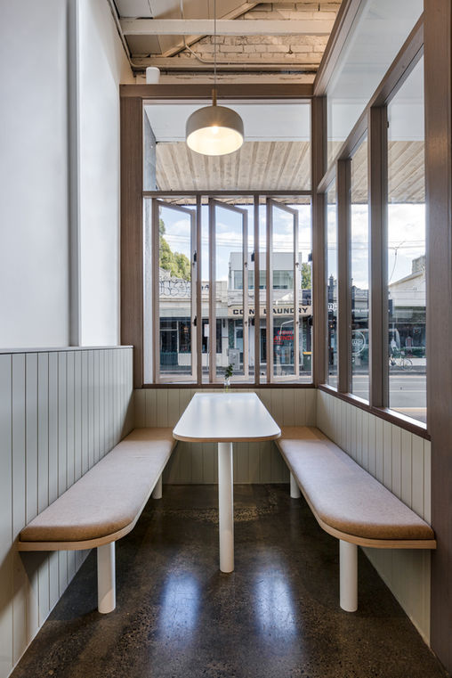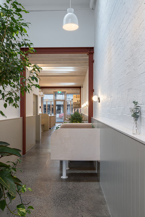 We worked closely with the owners to develop a scheme to enhance the natural lighting, and integrate all aspects of the required fitout in a playful way, to provide connection to the rear, whilst remaining practical for ongoing distribution from the cold room. We used natural and biodegradable materials throughout the fitout, ensuring the design would not negatively impact the environment over its lifecycle.